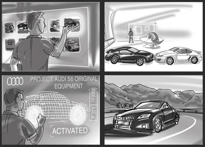 The majority of storyboard projects we do are in simple black and white line or tonal form, however our artists can produce full colour work to enhance your storyboard project or presentation.